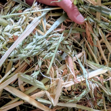 El heno de avena es más rígido y amarillo, lo que ayuda muchísimo al desgaste de las muelas. Además, es muy recomendable durante las épocas de muda de pelo por su alto contenido en fibra.